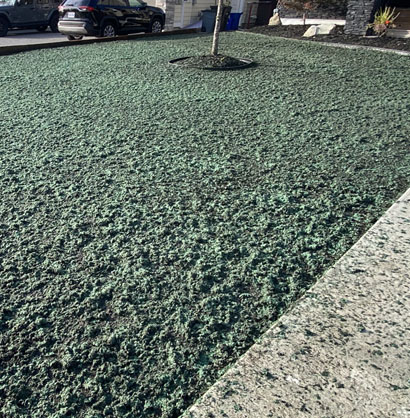 is a landscaping and lawn care technique that involves the application of a mixture of grass seed, mulch, fertilizer, and water to establish lush green lawns and vegetation.